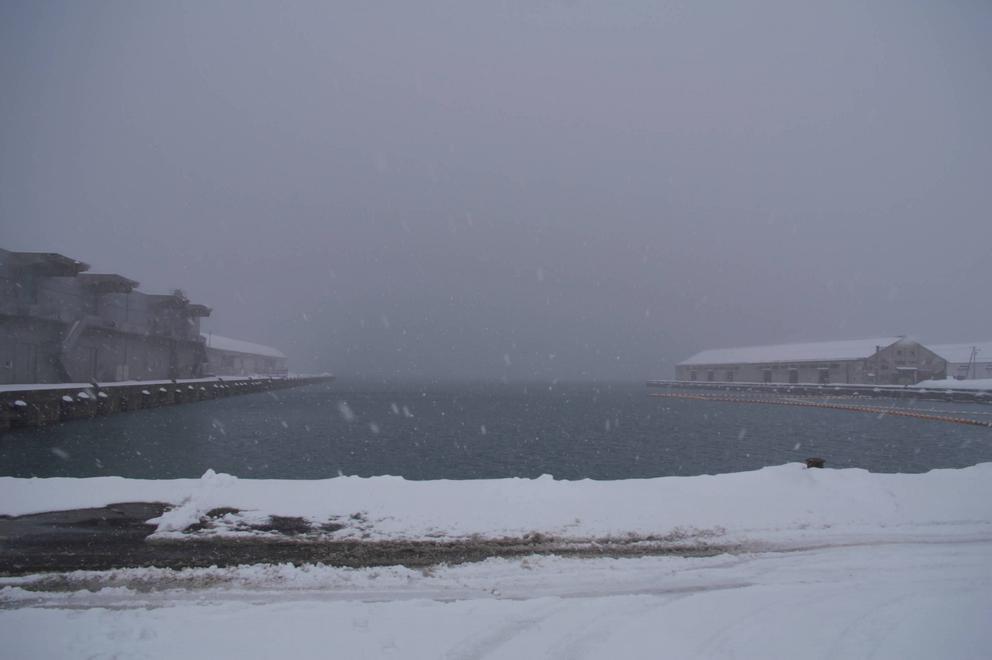 なんて思ってたら、いきなり降雪。しかもまるで発泡スチロールをこすって出来たようなツブツブの雪がババ〜ッと。雪不足のワリには今日は寒かったので降るかなぁとは思ったんですが、降りすぎて観光とか撮影とかやってる場合じゃなくなる(;´Д`)